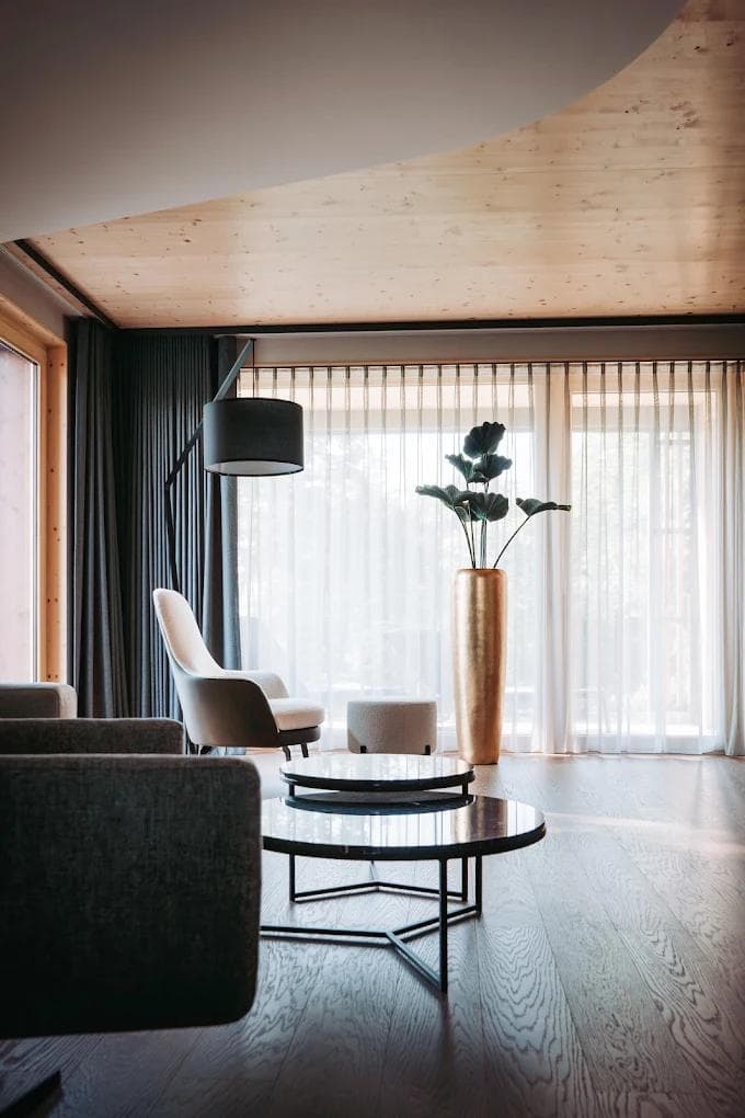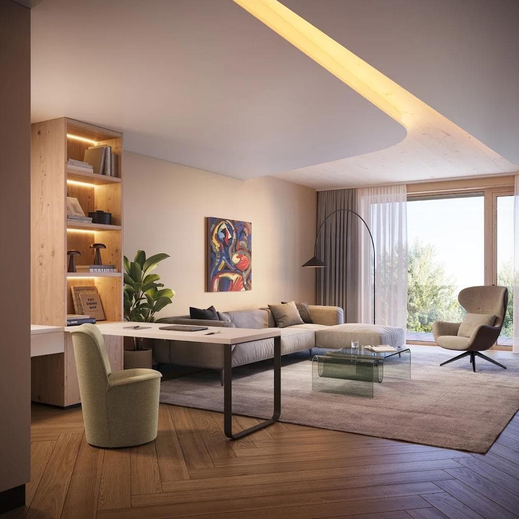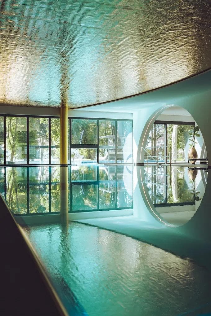 The design and environment are deliberately aligned with science-backed medicine to maximize therapeutic success. The use of natural wood, particularly Swiss stone pine, creates a calming atmosphere that lowers stress and improves sleep—key factors in recovery. The surrounding parkland and drinking-water-quality Lake Constance provide a natural setting that enhances relaxation and supports holistic regeneration. Nutrition is addressed through the GourMED concept, where gourmet cuisine is combined with healing and fasting principles to promote metabolic balance and gut health. Likewise, the spa’s architecture and treatments are designed to activate the parasympathetic nervous system, reinforcing medical therapies with deep relaxation. Together, architecture, nature, cuisine, and spa form a seamless environment that amplifies the impact of medical interventions, fostering sustainable wellbeing and long-term health outcomes.