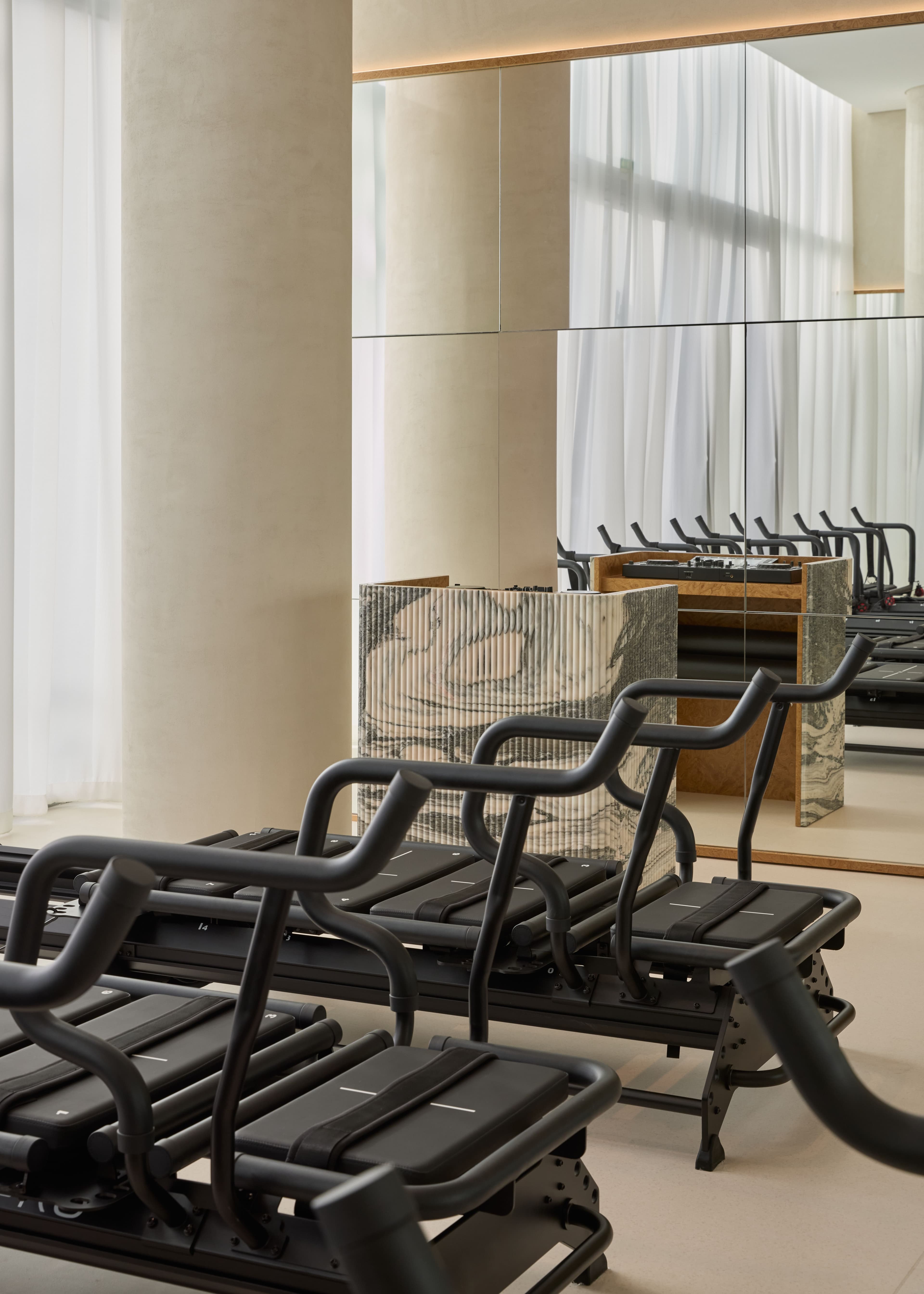 5. Music is clearly the heartbeat of your studio, centered around a custom marble DJ booth. Paloma, you often get behind the decks yourself. How does being both a founder and a DJ allow you to connect more deeply with the community during a session?