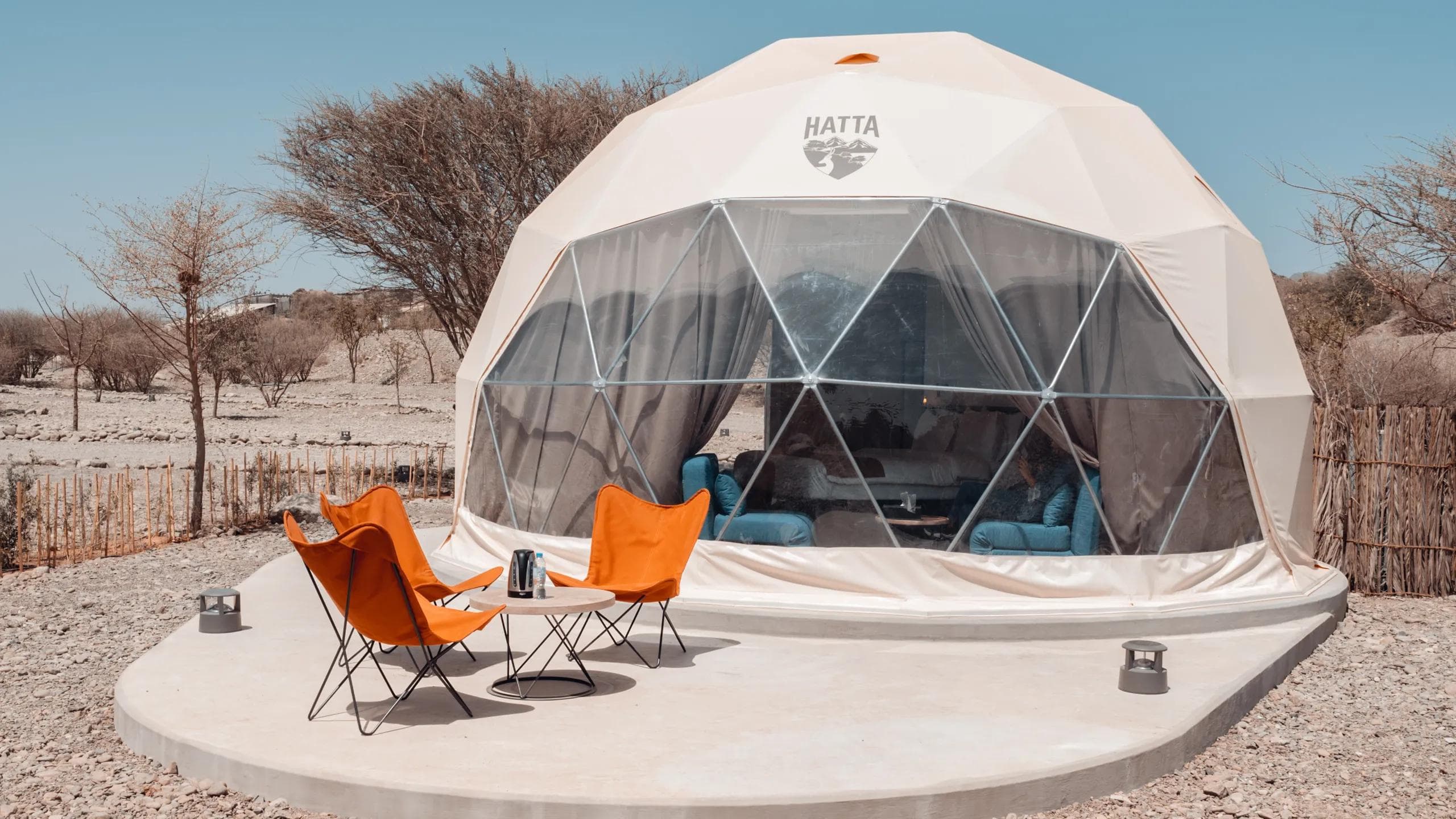 Set against the rugged Hajar Mountains, the Hatta Dome Park features chic, geodesic domes that marry mountain magic with modern comfort. Each dome comes with a private outdoor deck, fire pit, and uninterrupted views of jagged peaks and star-strewn skies.